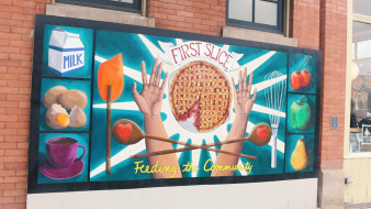The AlphaGraphics team visited First Slice in the months leading up to the makeover, taking photos and creating mockups of the new space. Once the approvals were given, the installation itself took five days. When finished, AlphaGraphics and First Slice hosted a grand reopening, inviting members of the community to come see the renovated space. Farris notes that more than 100 people lined up outside — with snow still on the ground — wanting to experience the new First Slice.