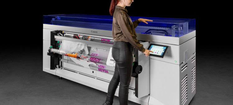 The new Colorado M-series is a modular 64" roll-to-roll printer with two speed configurations and optional UVgel white ink capability. | Credit: Canon USA