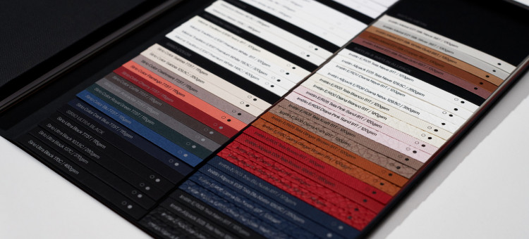 Imitlin: A range of embossed papers made from high-strength, FSC® certified virgin fibers. With solid, lightfast colors and an anti-fingerprint treatment, the range boasts high abrasion resistance and excellent tear and folding strength. The color palate is as unique as the embossing patterns including new Diana with a hammered leather look.
