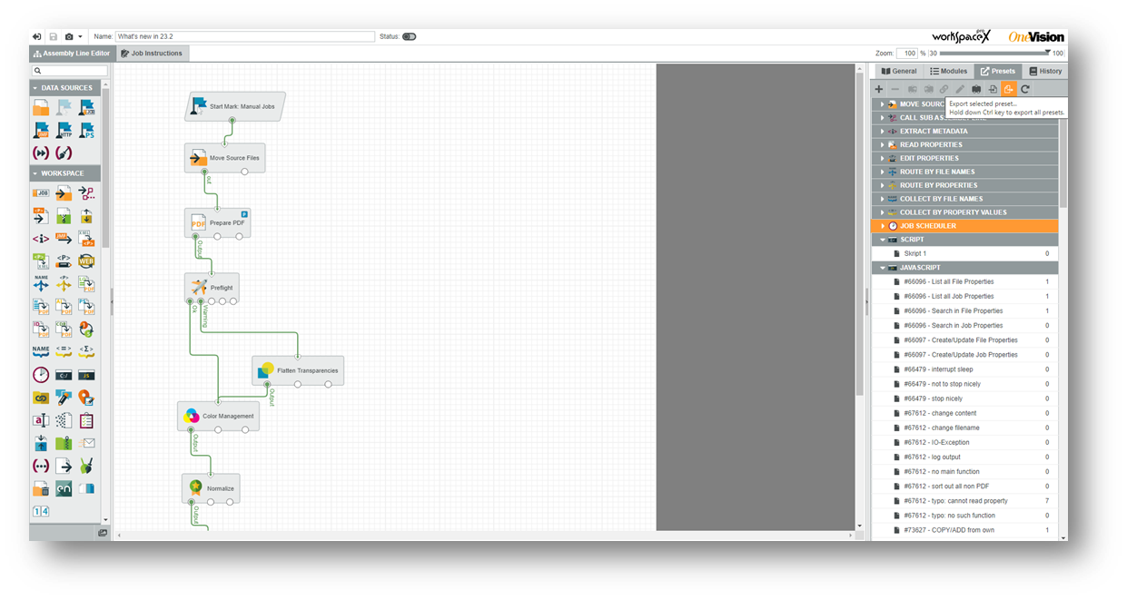 With the release of the latest software version, new connectors have been added: the integration to ColorGATE Productionserver and to Horizon StitchLiner. The new version 23.2 also offers optimizations in print sheet preparation and improvements in variable data printing. The workflow editor has been enhanced with a new module overview for optimized handling. This simplifies the handling of complex workflows in particular. The additional display of throughput times per job also ensures greater transparency.