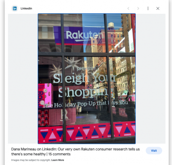 According to a LinkedIn post by Dana Marineau, Rakuten’s Chief Marketing Officer, Rakuten’s own consumer research said that consumers are still skeptical about Cash Back. Because of that, Rakuten decided to create a special, immersive “Sleigh Your Shopping” pop-up event, Rakuten's first in-person holiday shopping event.