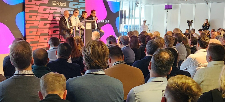 Leading a series of presentations, presented in English and live-translated into French, German, Italian, and Spanish, Gregory Bilsen, CEO EMEA at Roland DG EMEA , set the stage, stating that in Formula 1, the real factor for success is a mix of the machine/team and the driver, with the necessity for strong interaction between the two. “The better we work together,” he said, indicating the need for interaction between the OEM and its users and distributor network, “the better we can collaborate.”