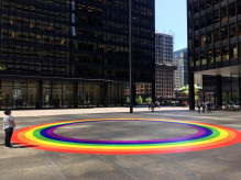 To show its support for Toronto Pride, longtime Pride sponsor Toronto-Dominion (TD) Bank wanted to install a large, circular rainbow graphic on the ground of the courtyard by its headquarters. TD Bank sought the expertise of AIP Media, based in Mississauga, Ontario.