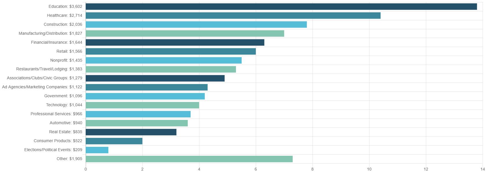 Promo pros sell these and other products to a wide range of industries. The markets in which promo distributors generate the most sales are, in order, education, healthcare, construction, manufacturing/distribution, financial/insurance, retail, and nonprofit.
